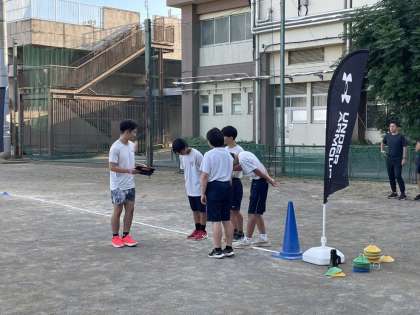 区陸に向けて特別練習5 9月13日(水) 公開日 2023/09/14 更新日 2023/09/14 できごと 参加した生徒にアンダーアーマーさんから参加賞をもらいました。エコバックやじゃんけんに勝った人はコップなどもゲットしていました。 いいね(0)
