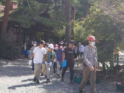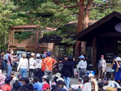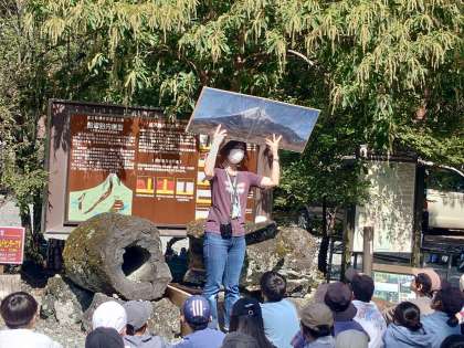 フィールドセンターの方のお話のあと、CD組は案内の先生と樹海へ。