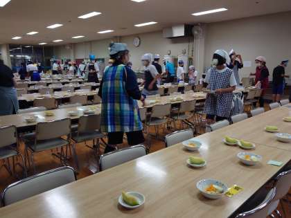 5時半食事係は食堂へ。夕食準備になります。