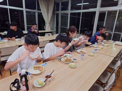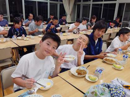 I組連合移動教室1日目39 9月25日(月) 公開日 2023/09/25 更新日 2023/09/25 できごと 笑顔で楽しく食事をしましょう。 たくさん食べてね。このあとは、体育館で他校の生徒さんと交流です。 いいね(0)