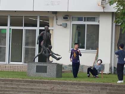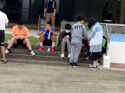 お風呂のあとは。楽しみにしていたおやつTIME。園庭で、みんなで食べます。