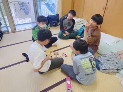 I組連合移動教室2日目50 9月26日(火) 公開日 2023/09/26 更新日 2023/09/26 できごと お部屋の整理整頓、日記の記入が終わった人から自由時間。各部屋ごとに過ごしています。 いいね(0)