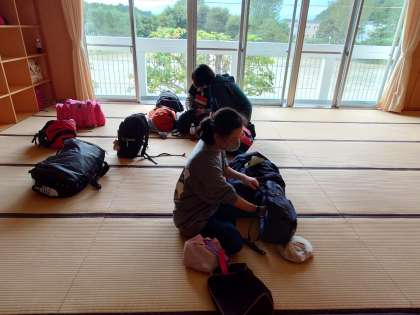 清掃が終わったお部屋から、荷物を持って園庭へ。