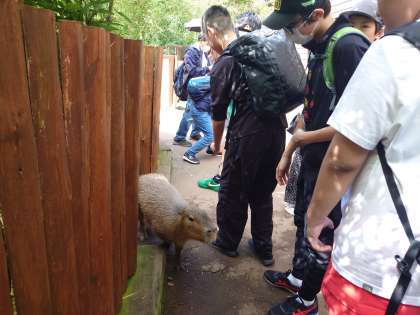 カピパラと触れ合いました。