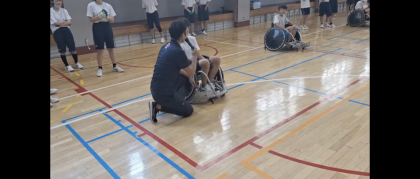 東京2020レガシー醸成講演会3 9月27日(水) 公開日 2023/09/28 更新日 2023/09/28 できごと 実際に子どもたちも車椅子ラグビー体験をしました。 沼田先生がタックルされて吹っ飛んだと言っていました。 パラリンピックとアジア大会のメダルも見せていただきました。 今回のパラ講演会や車椅子ラグビー体験は、人権教育の障害者理解教育として行いました。障害に対する理解を深めるだけでなく、この経験を通して、差別や偏見を許さないという態度や姿勢、気持ちを育ててほしいと思います。 いいね(0)