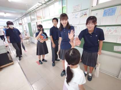 名残惜しい小学生が、ハイタッチしにきてくれました。