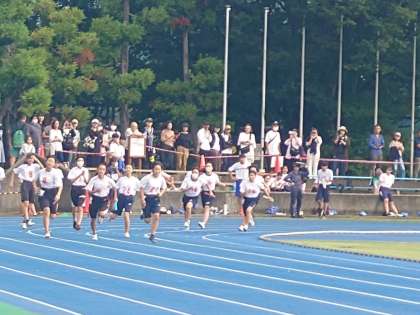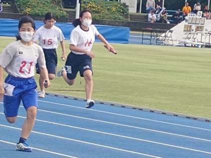 連合陸上大会19 10月5日(木) 公開日 2023/10/06 更新日 2023/10/06 できごと 最後の種目。 4×100メートルリレーです。 2年女子。バトンを繋いで、第4走者、ゴールに向かって走ります。 いいね(0)