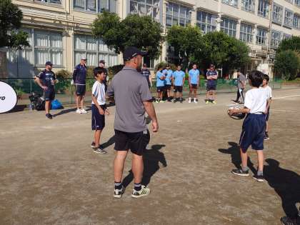 リコーブラックラムズ東京学校訪問7 10月13日(金) 公開日 2023/10/14 更新日 2023/10/14 できごと 4〜5人に分かれて、パスの練習。 選手の方も中にはいって、一緒にやりました。 いいね(0)