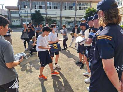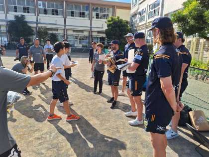 リコーブラックラムズ東京学校訪問15 10月13日(金) 公開日 2023/10/14 更新日 2023/10/14 できごと 前半終了。 最後に、各チームからの記念品と集合写真をとりました。 ラグビー体験はどうでしたか? いいね(0)