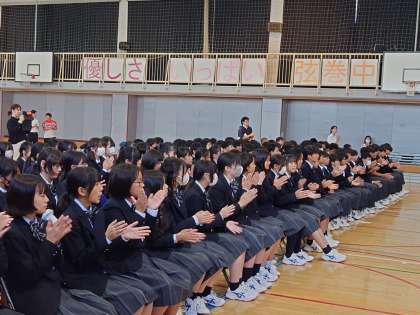 合唱コンクール特別時程はじまる13 10月16日(月) 公開日 2023/10/16 更新日 2023/10/16 できごと 大きな拍手をもらいました。 次は1年生の合唱です。 課題曲だけになります。 いいね(0)