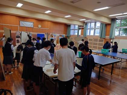 学芸発表会展示部門準備2 10月23日(月) 公開日 2023/10/23 更新日 2023/10/23 できごと 展示委員を中心に、各係の生徒が残って、学年ごとに会場を準備し、展示していきます。 いいね(0)