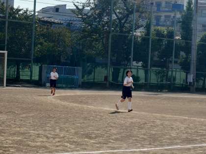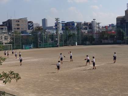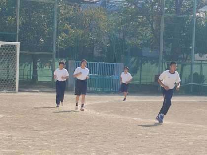 I組はマラソン、通常学級はソフトボールに取り組んでいます。