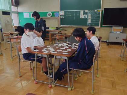 I組国語の授業です。ことわざかるたで盛り上がりました。