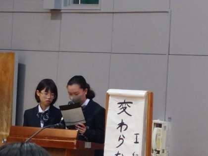 学発舞台部門開会式&1年生I組発表10 10月28日(土) 公開日 2023/10/28 更新日 2023/10/28 できごと 学年合唱大きな声をもらいました。 クラス合唱、トップはI組です。 クラス紹介がはじまります。 いいね(0)