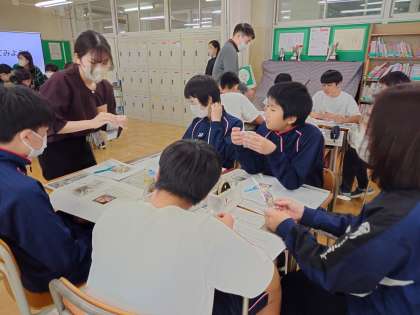 弦中生活1 11月14日(火) 公開日 2023/11/14 更新日 2023/11/14 できごと I組では、駒沢大学の学生さんが来て、ロスフラワーでポプリを作るという授業をしました。自分たちで作ったポプリを商品にして売るということが最終目標です。 いいね(0)