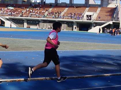 5キロコースはトラック2周、外周3周、最後トラック一周です。長い長い道のりです。