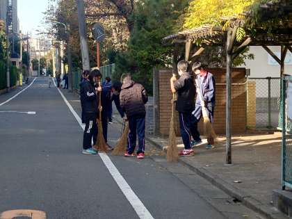 学年ごとに担当の場所に分かれて落ち葉清掃をしました。