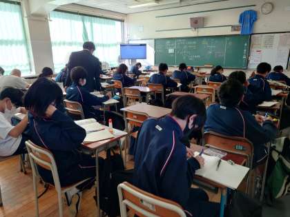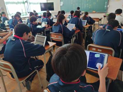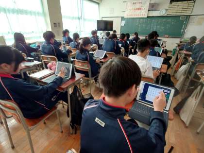 国語の授業では、タブレットを活用して、一人ひとりの作品にコメントをしていました。