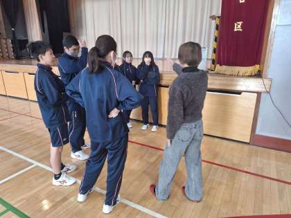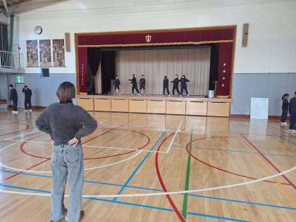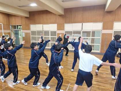 ダンス教室 12月4 日(月) 公開日 2023/12/06 更新日 2023/12/06 できごと I組は、ARATAさんに校歌ダンスを教えてもらい、2年生は発表会に向けてダンス教室のみか先生に来てもらい、アドバイスをいただきました。 みんなとても楽しそうに踊っていました。 みか先生にはナイスアドバイスをもらったそうです。 いいね(0)