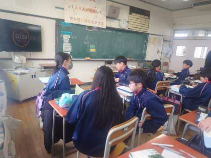 安河先生の研究授業です。英語のスキルを高める話す聞く書くのバランスの取れた授業です。
