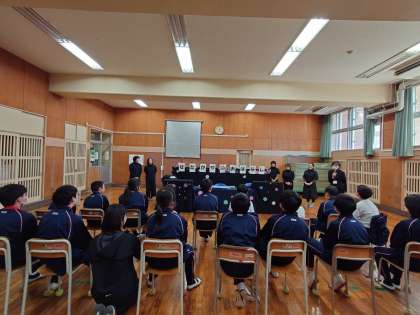 I組ボロ市事前学習5 12月8日(金) 公開日 2023/12/09 更新日 2023/12/09 できごと お話いただいた会の皆さんに感謝の気持を込めて、お礼の挨拶をしました。 ありがとうございます。 来年もぜひ、よろしくお願いします。 いいね(0)