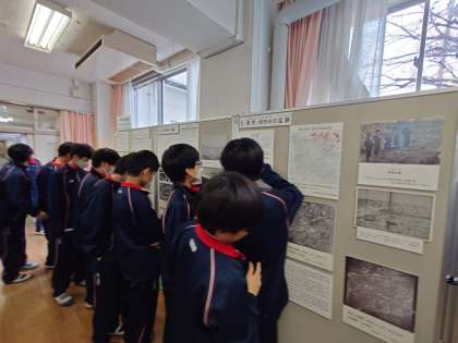 先週から世田谷区平和資料館巡回展を弦巻中学校第1会議室で開催しています。