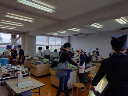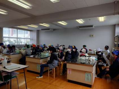 3年生家庭科の調理実習です。フレンチトーストづくりです。