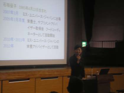 講演会では、ミスユニバースになる人たちも、しっかり食事をとっているという話から始まりました。健康の3原則は「栄養」「運動」「睡眠」、特に朝食をしっかりとることが大切というお話でした。