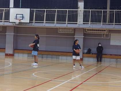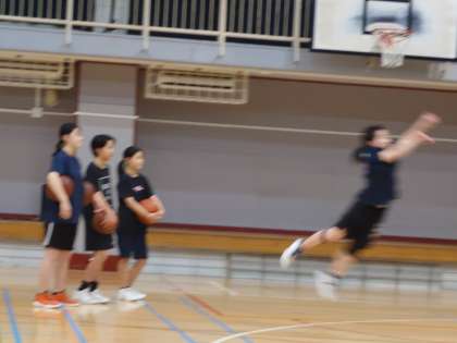 体育館では女子バスケットボール部が、フリースロー勝負大会をやっていました。