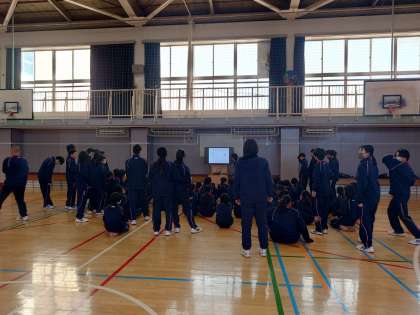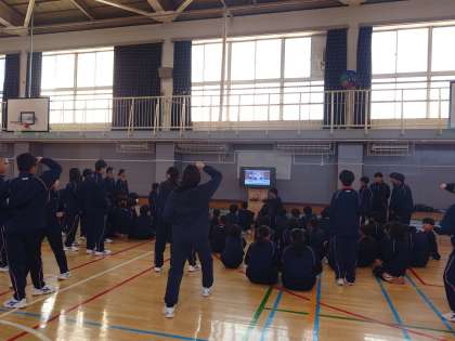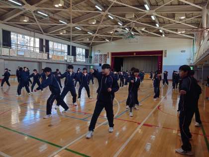 弦中生活4 1月18日(木) 公開日 2024/01/20 更新日 2024/01/20 できごと 1年生体育の授業。1年生武道の授業は空手をやっています。しっかりとビデオで空手の型を覚えてやってみます。 いいね(0)