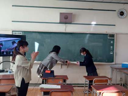 金曜日の百人一首大会の表彰式です。ハイブリッド開催しました。
