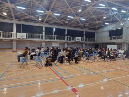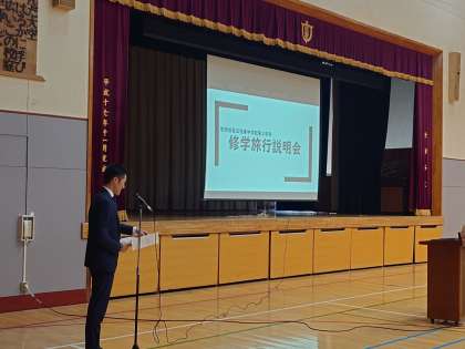 昨日の長崎塾に続き、体育館で保護者向けの修学旅行説明会がありました。
