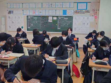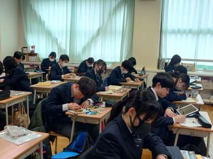 今日の弦中生1 2月22日(木) 公開日 2024/02/23 更新日 2024/02/23 できごと 3年生の都立入試1次、分割前期も無事に終わりました。 来週から学年末テストです。 教室で2年生の美術の授業です。タブレットを活用して、ステンドグラスのデザイン画を考えている様子。 いいね(0)
