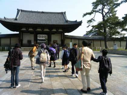 法隆寺に着きました。記念写真を撮ってから見学です。
