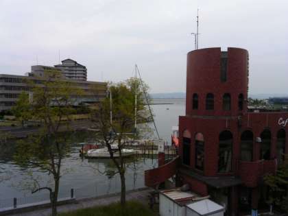 無事に宿に着きました。今日の宿舎は琵琶湖の畔、おごと温泉。