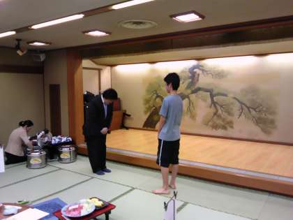 宿舎の方への挨拶をしています。