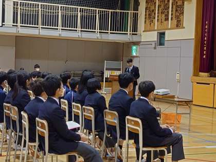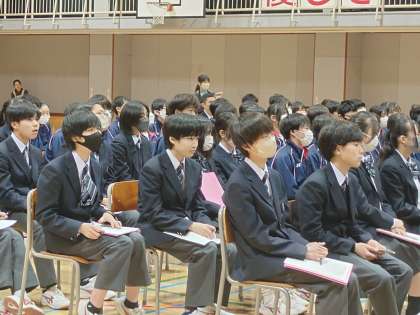 2年生は、3年生の話をメモを取りながら一生懸命聞いていました。