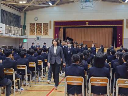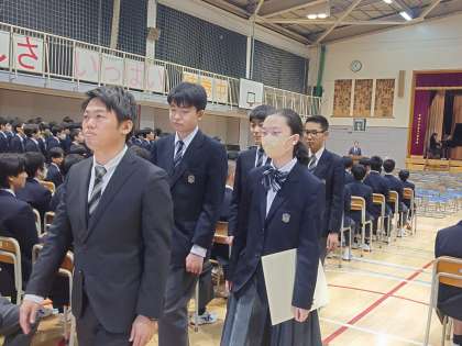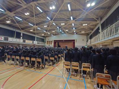 全校生徒での予行練習でした。1.2年生も3年生に負けないくらい立派な態度で、頑張ってくれました。