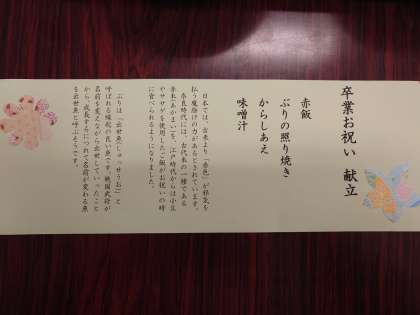 3年生卒業まであと3日10 3月15日(金) 公開日 2024/03/16 更新日 2024/03/16 できごと 給食もお祝い御膳。出世魚のブリに御赤飯です。感謝の気持でいただきます。 月曜日が三年生にとって、中学校生活、最後の給食ですね。 いいね(0)