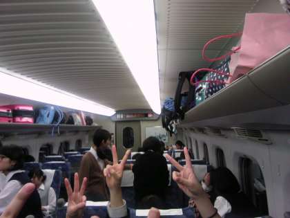 定刻通り京都駅を出発し、生徒たちのVサインと共に一路東京駅へ!