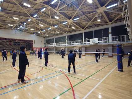 体育館では、バレーボールとバスケットが白熱。