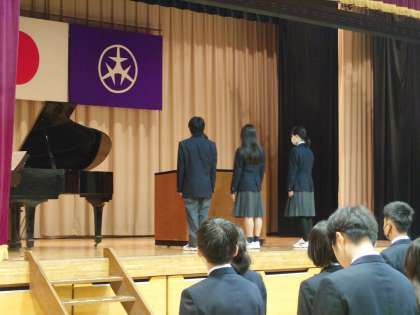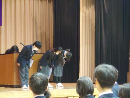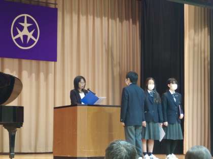 各学年、I組の代表生徒が、修了証を受け取りました。