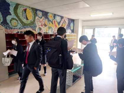 朝から先生方に名表をもらって、どこのクラスか確認します。担任は?みんなドキドキ、ワクワクです。