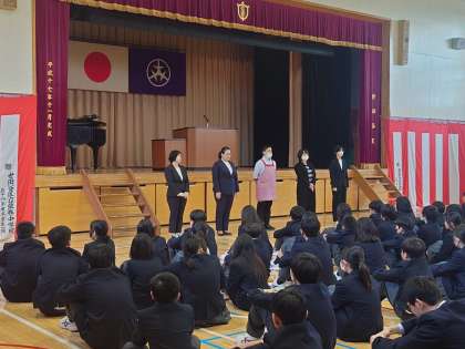 始業式7 4月8日(月) 公開日 2024/04/09 更新日 2024/04/09 できごと 2年生、3年生の先生方の紹介。 職員の紹介と続きます。 五年ぶりの始業式での校歌斉唱もありました。 いいね(0)