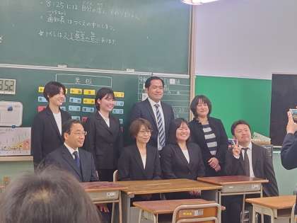 I組の新しい先生たちの写真撮影中。
