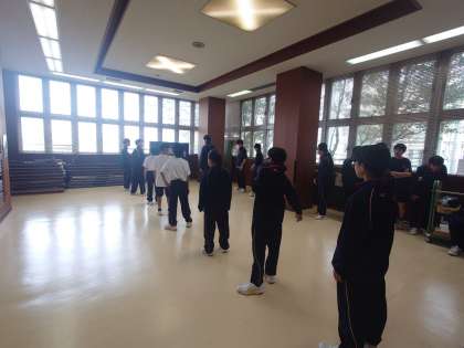 たくさんの一年生が仮入部中でした。先輩が優しく指導をしていました。