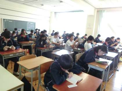 今年から、8時25分から「朝読書」が落ち着いて始められるようにと、25分のチャイムがなるまでに、着席するルールに変わりました。落ち着いた雰囲気で朝読書が始まっています。