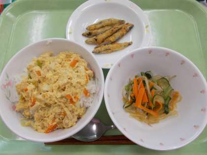 5月7日の給食 公開日 2024/05/07 更新日 2024/05/07 給食 5月7日の献立 ・きつね丼 ・きびなごの七味揚げ ・糸寒天と野菜の和え物 きつね丼は油揚げがたくさん入った卵とじ丼です。 いいね(0)