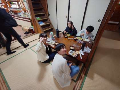 お弁当を食べるみんなの笑顔でいっぱいです。美味しそうです。