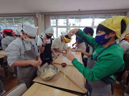 最後の仕上げになりました。美味しそうなおうどんの出来上がり。